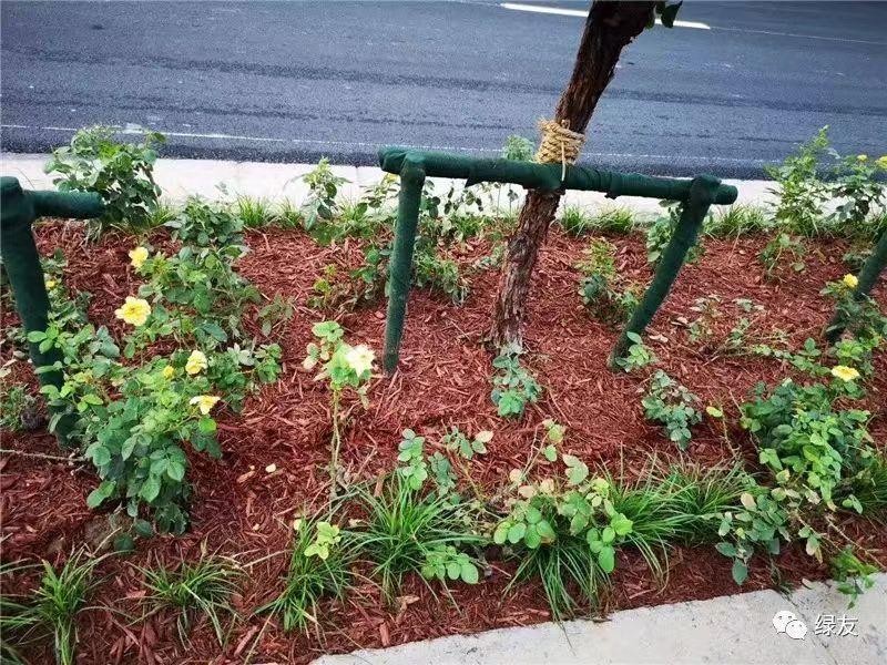 覆蓋物是一種新型的城市綠地造景材料,通過粉碎錘磨、高溫發(fā)酵、染色處理等工序,把園林廢棄物制成彩色木屑,覆蓋在土表起到保濕、保溫、滯塵、改良土壤等作用,在給裸土敷上“面膜”的同時,又形成美麗的圖案裝扮環(huán)境。