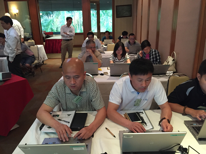 此次培訓(xùn)作為全新的A系列新產(chǎn)品全面推向市場(chǎng)的正式培訓(xùn),也是迪爾面對(duì)整個(gè)亞洲市場(chǎng)的第一次正式培訓(xùn),因此聚集了亞洲十幾個(gè)國家二十多家經(jīng)銷商的四十余名學(xué)員,為了節(jié)省費(fèi)用,提高培訓(xùn)效率,這次培訓(xùn)將銷售培訓(xùn)和技術(shù)培訓(xùn)整合到了一起,主要由來自約翰·迪爾美國培訓(xùn)中心經(jīng)驗(yàn)豐富的Garry和Mike兩位講師授課,而約翰·迪爾中國市場(chǎng)部銷售服務(wù)經(jīng)理李恩中的全程參與和同步中文翻譯并加以必要的講解和補(bǔ)充,使得我們對(duì)培訓(xùn)內(nèi)容能夠100%的了解和接受,大大提高了培訓(xùn)的有效性。