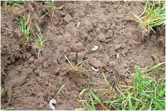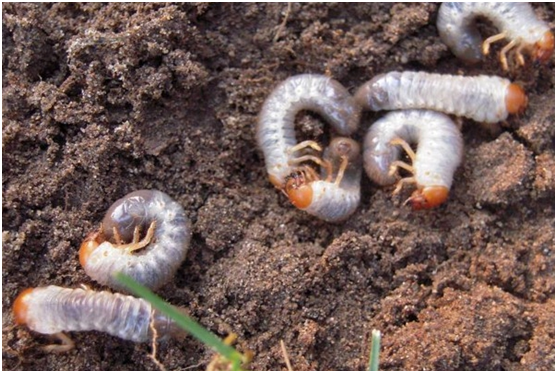 如果七月底正常澆水,已經為草坪補充了足夠的水分,但仍然出現了這種情況,同時向上抓取枯黃草皮,很容易即可將其抓起,根系缺失,土壤表面可以發現白白的“小肉蟲子”,這個就是我們今天要聊的蠐螬。