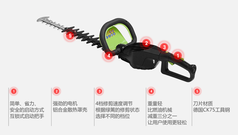 3. 4檔調速設計,根據植物的生長狀態選用合適的修剪速度。