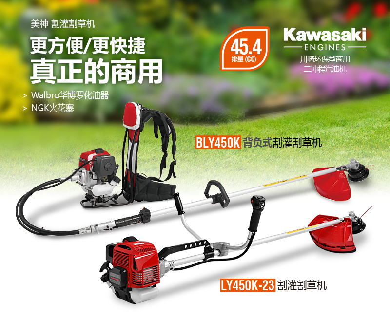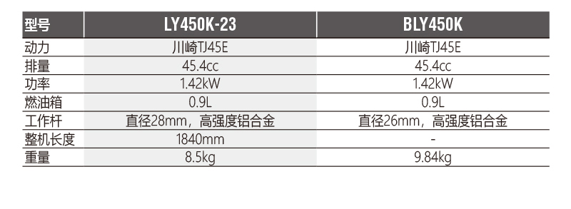 LY450K 是一款商用型割灌割草機,搭載了川崎TJ45E, 45.4cc大排量發動機,保證了工作的高效、快捷。