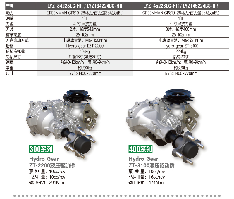 · 選用美國Hydro-gear EZT 液壓驅(qū)動系統(tǒng),